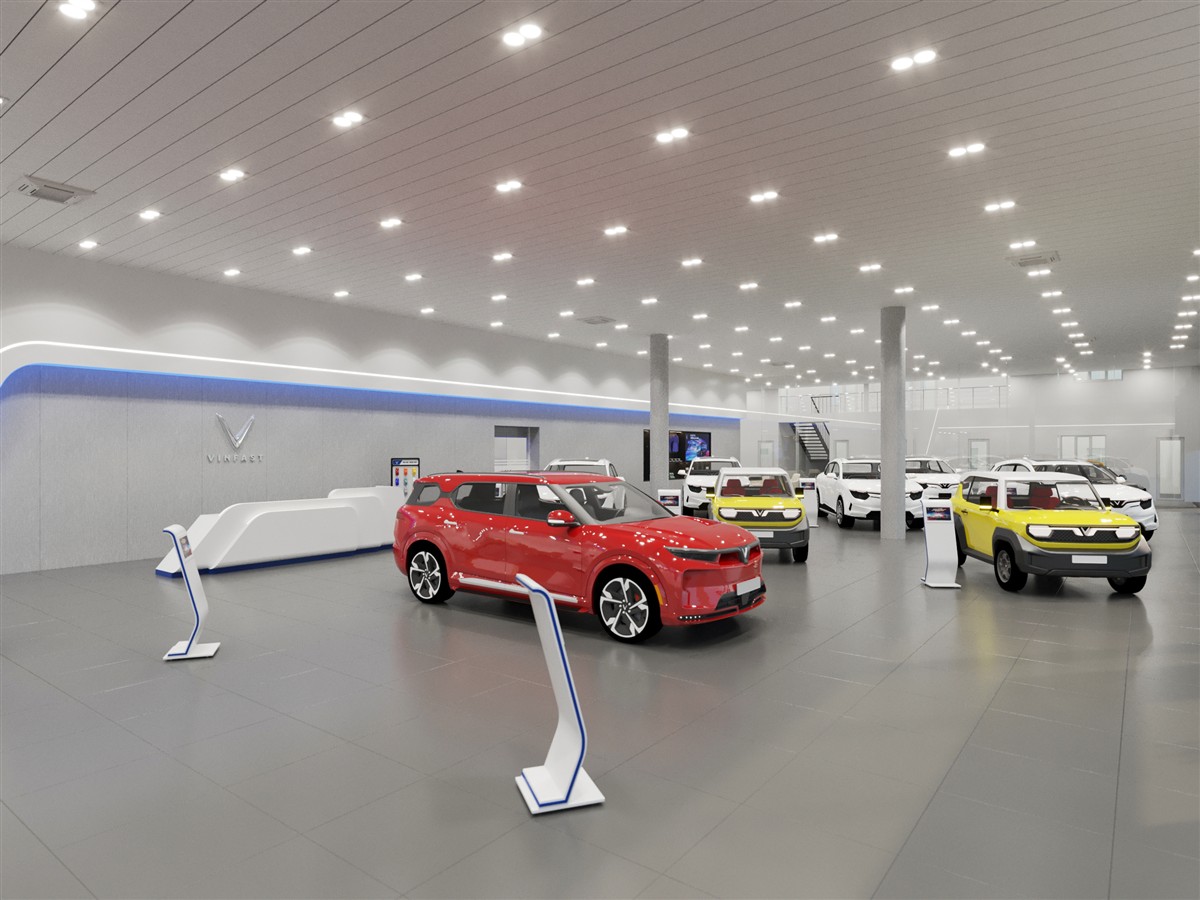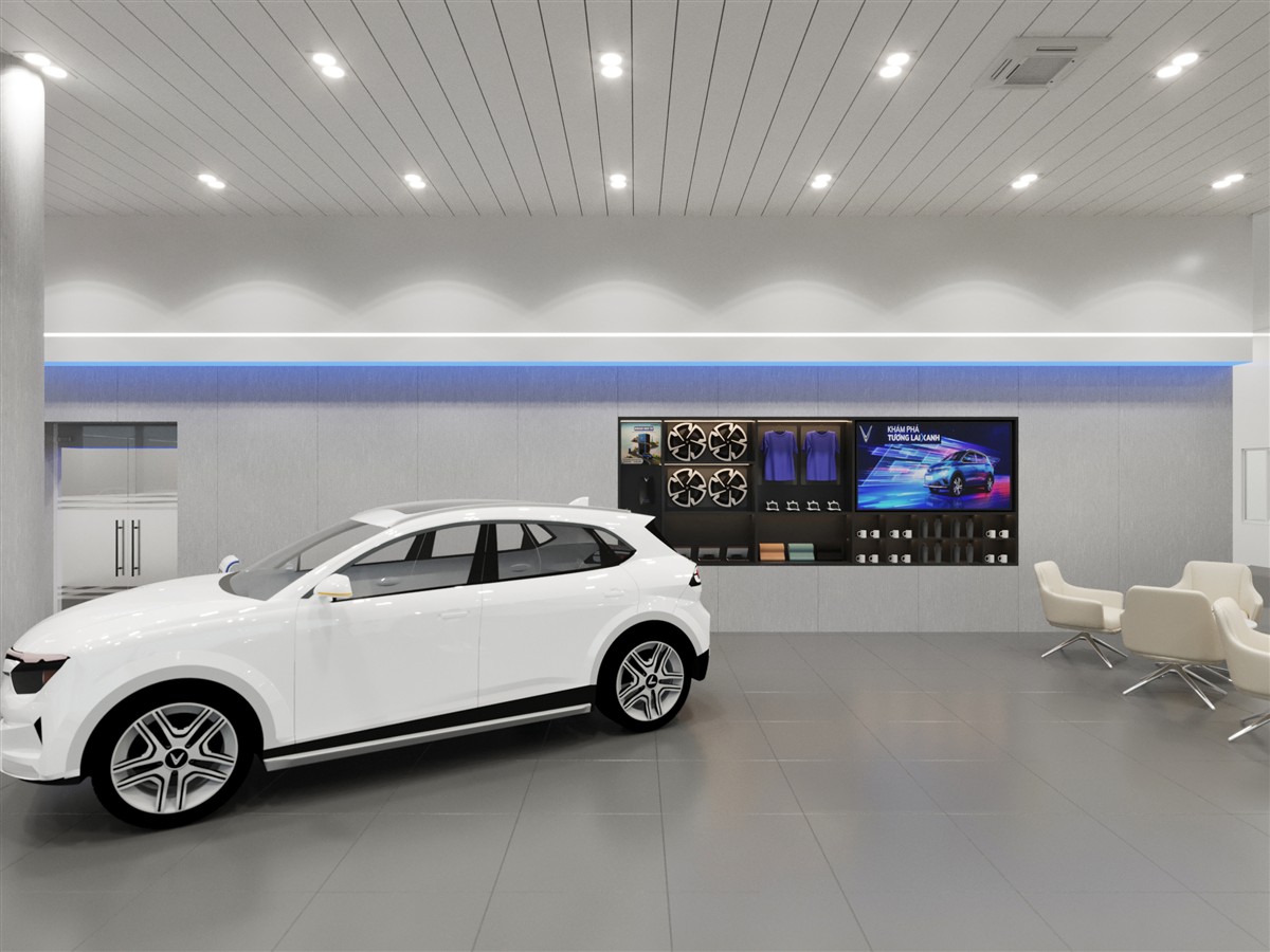 Showroom được thiết kế theo chuẩn nhận diện thương hiệu, đảm bảo không gian trưng bày hiện đại, chuyên nghiệp và đồng bộ với toàn hệ thống VFG.