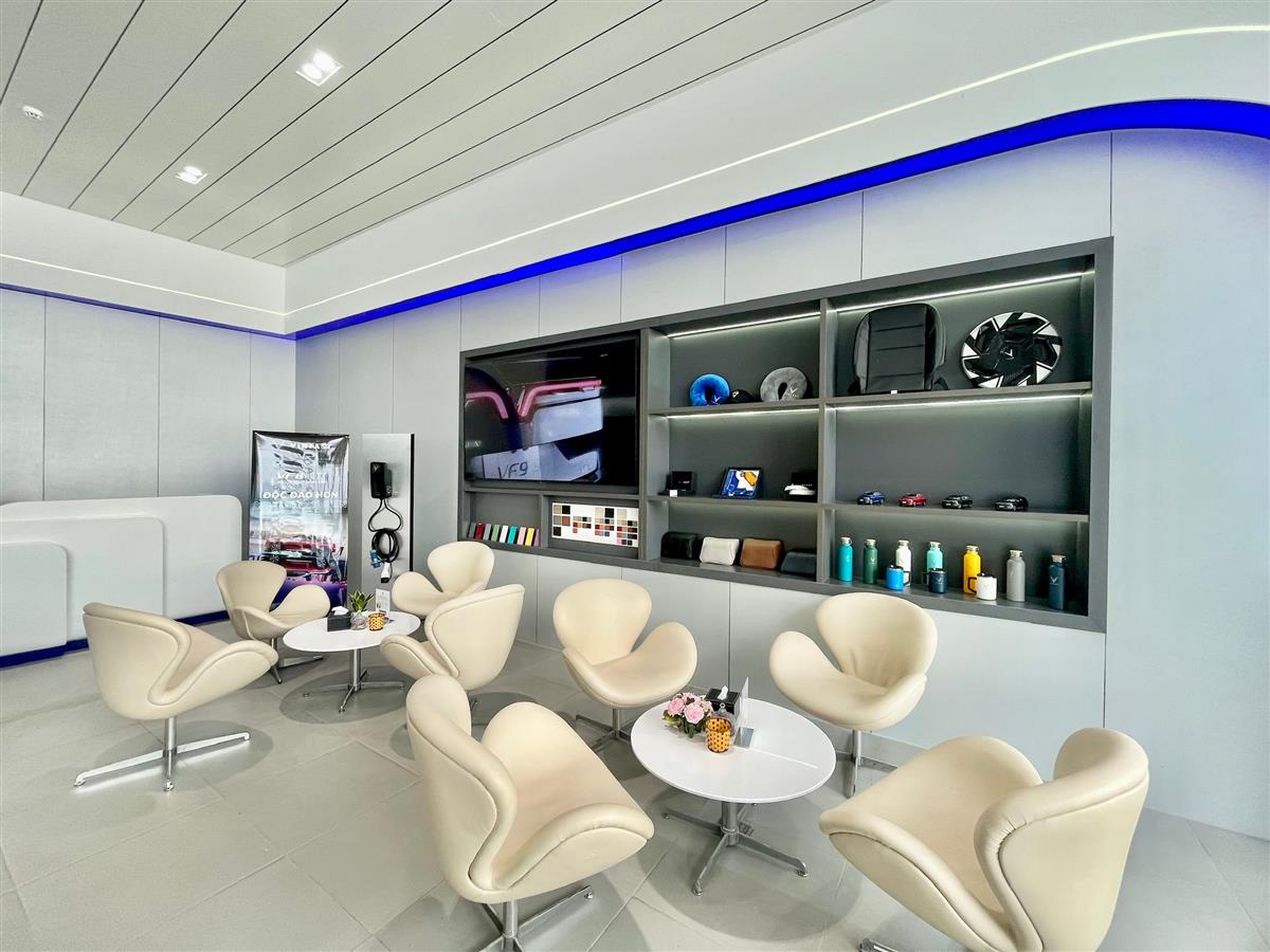 VF Kim Giang được thiết kế theo tiêu chuẩn của VinFast với không gian mở, hiện đại và tinh tế. Khách hàng có thể trực tiếp chiêm ngưỡng, trải nghiệm các mẫu xe điện mới nhất như VinFast VF 8, VF 9 cùng nhiều sản phẩm trưng bày độc quyền. Khu vực tiếp đón khách hàng được trang bị đầy đủ tiện nghi: bàn ghế hiện đại, màn hình LED, khu trưng bày phụ kiện và bộ sưu tập vật liệu giúp khách hàng dễ dàng lựa chọn, cá nhân hóa chiếc xe theo sở thích riêng.