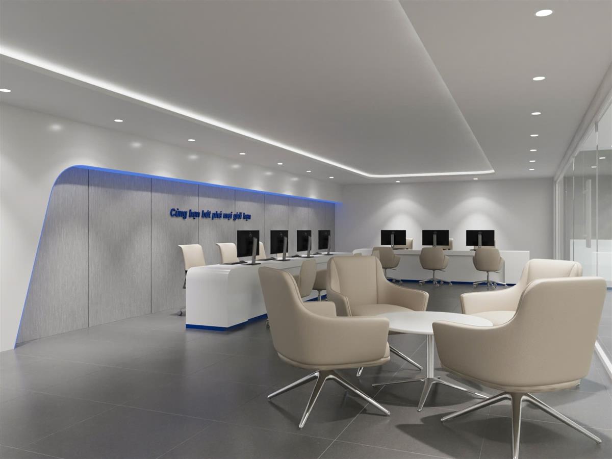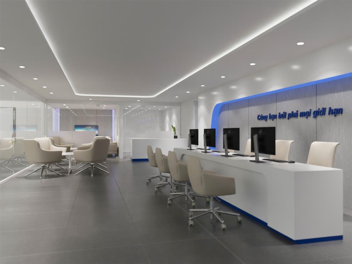 - Sảnh đón tiếp khách hàng rộng rãi, chuyên nghiệp