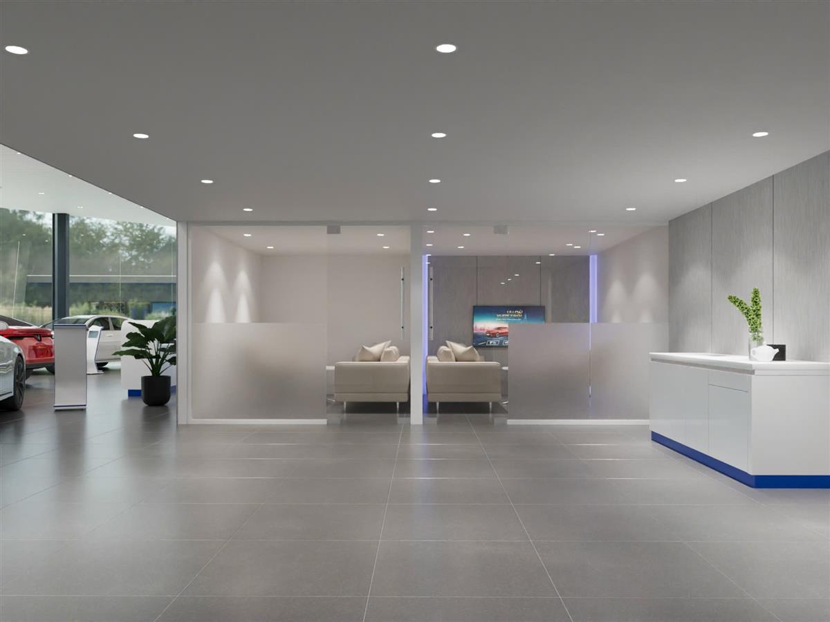- Showroom trưng bày xe với hệ thống ánh sáng cao cấp